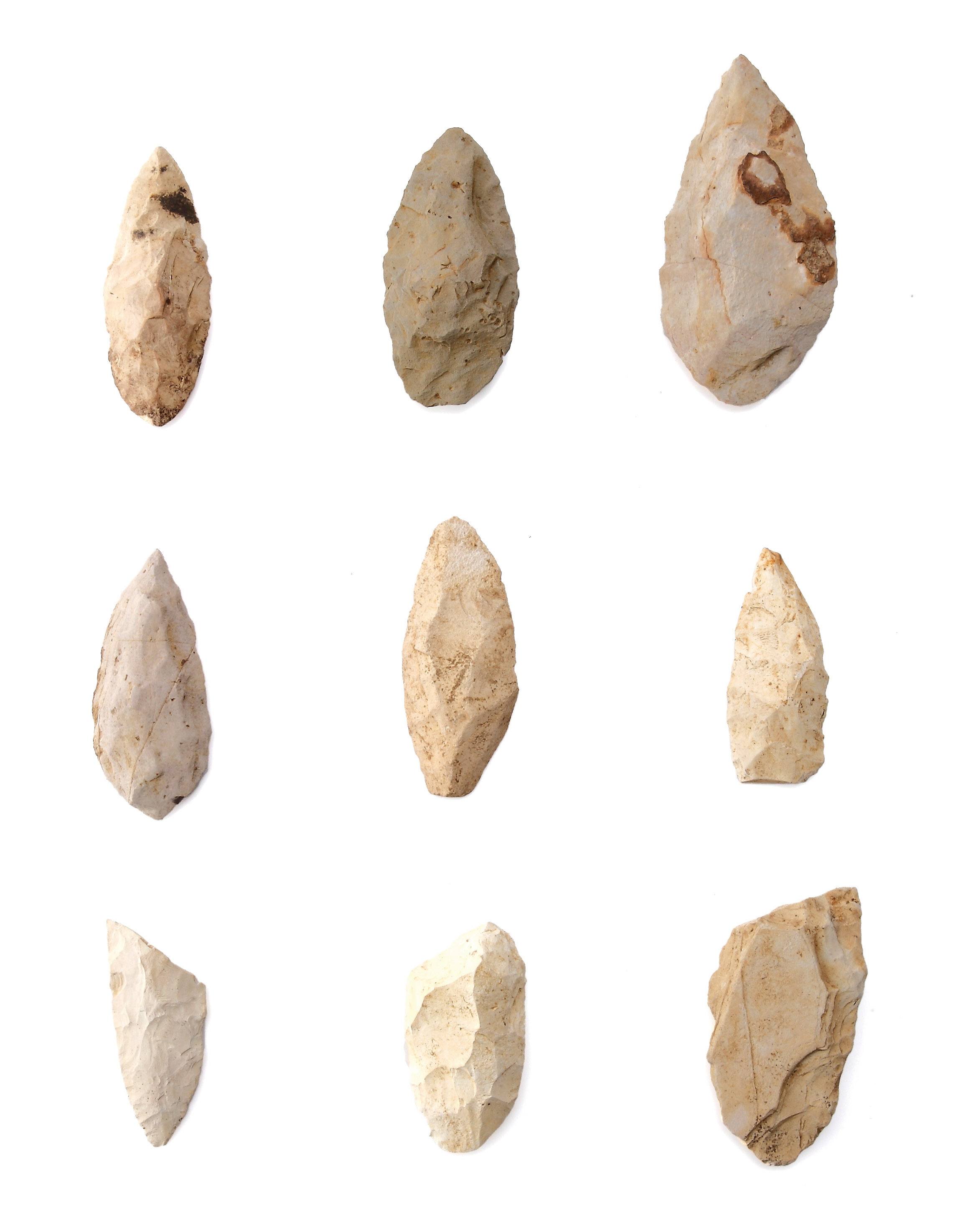 | 縄文時代草創期の前半にかけて盛行した石器。名前の通り、木葉に似た形に仕上げ、両端を尖らせた石器。後期旧石器時代末から縄文時代草創期前半にかけて盛行し、槍先として用いられたと考えられる。東海地方では、このほか、茎部を持つ有舌尖頭器が、単独で出土する事例が多い。 | |||